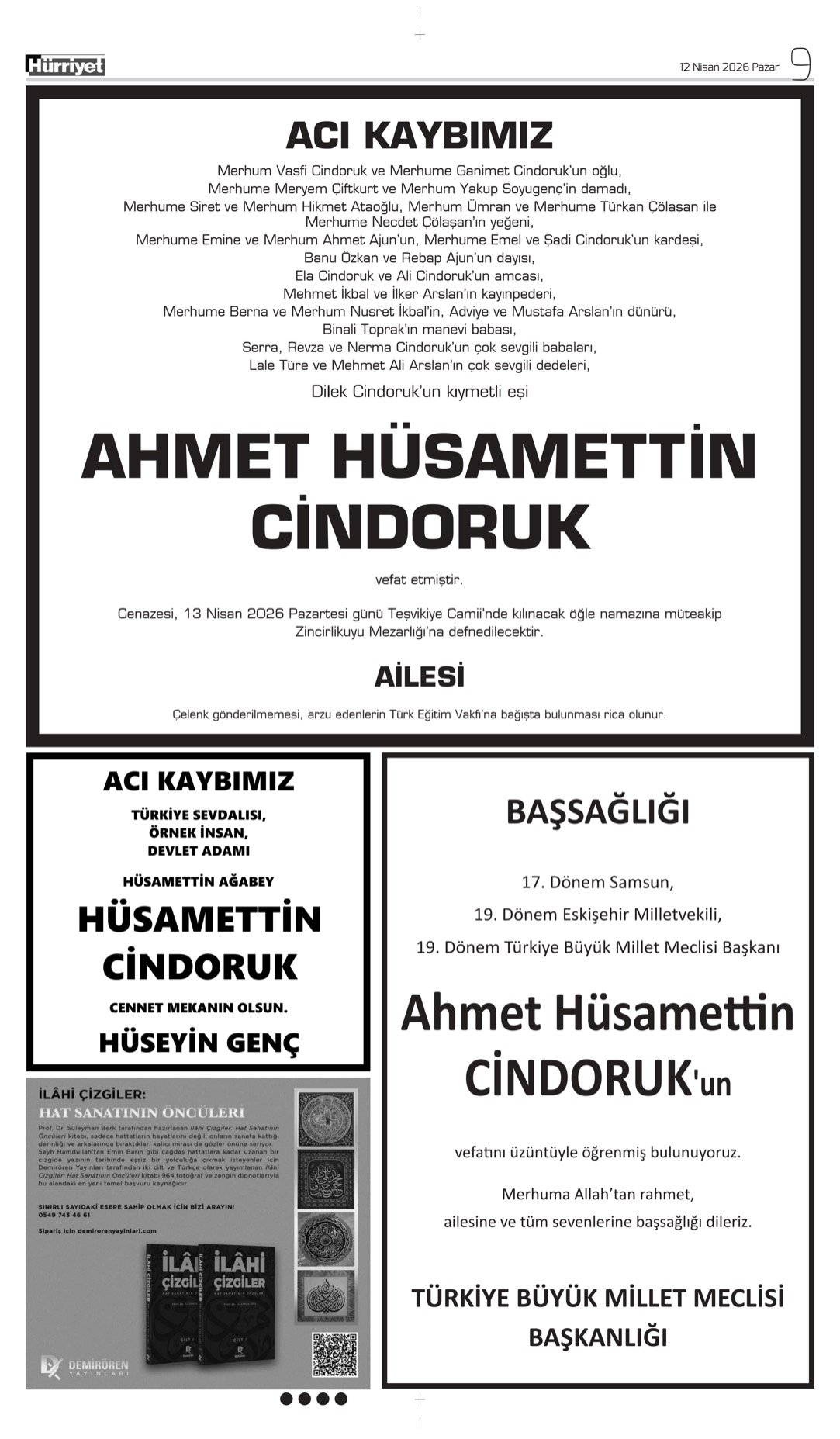 Hürriyet Vefat İlanları – 12 Nisan 2026