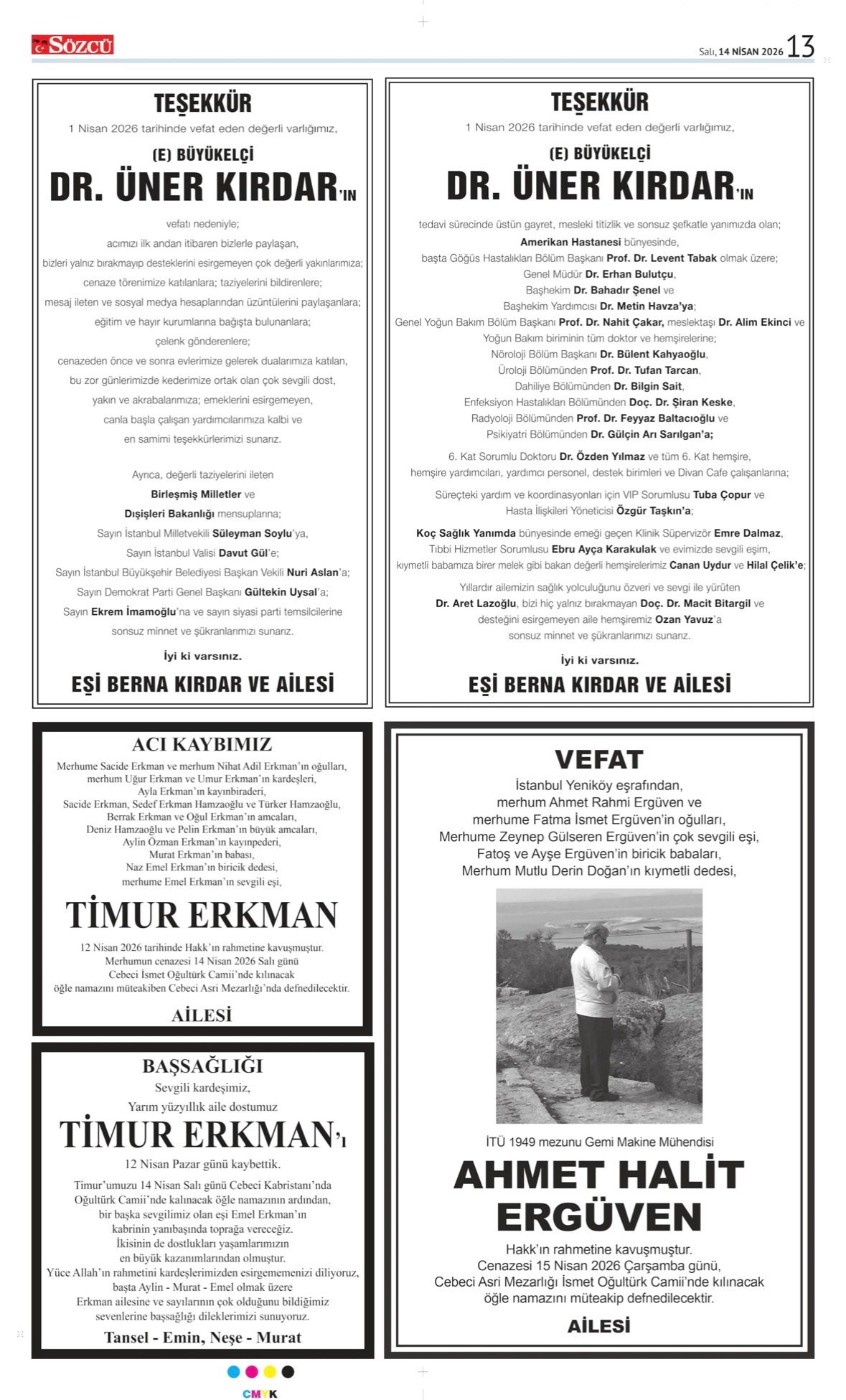 Sözcü Vefat İlanları – 14 Nisan 2026