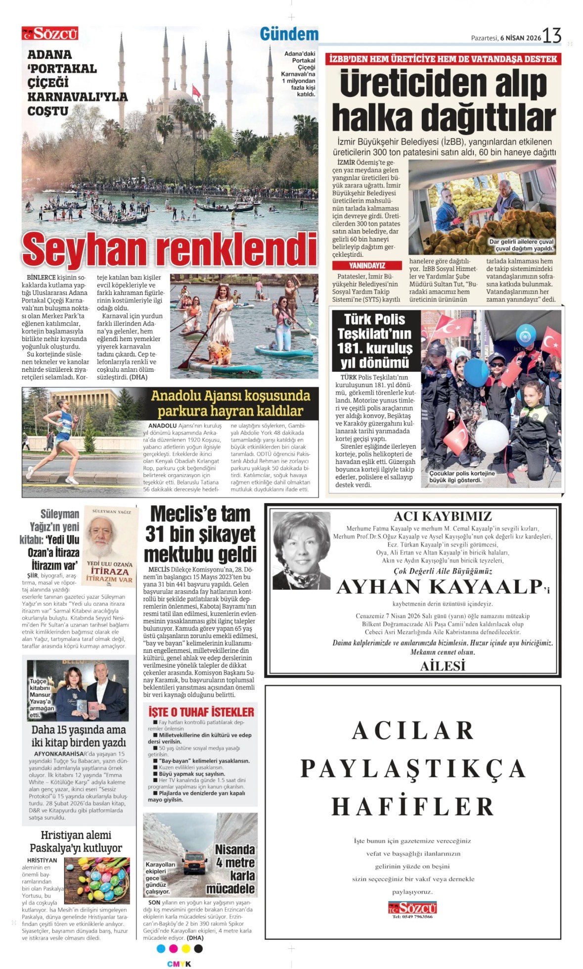 6 Nisan 2026 Sözcü Gazetesi vefat, başsağlığı ve anma ilanları. İlan vermek için 0533 504 01 01 numaralı hattı arayın.