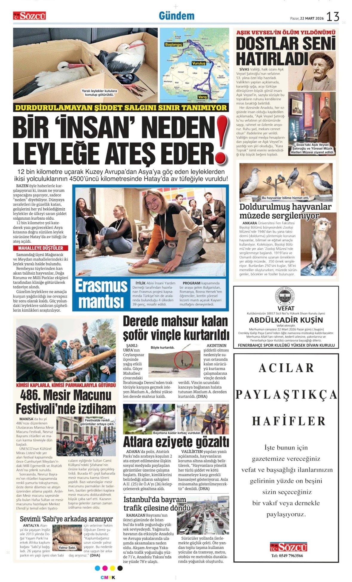 SÖZCÜ GAZETESİ İLAN SERVİSİ: Vefat İlanları;EROL DEMİREL, ÖMER KEMAL GÜRER,23 Mart 2026 Sözcü Gazetesi vefat, başsağlığı ve anma …