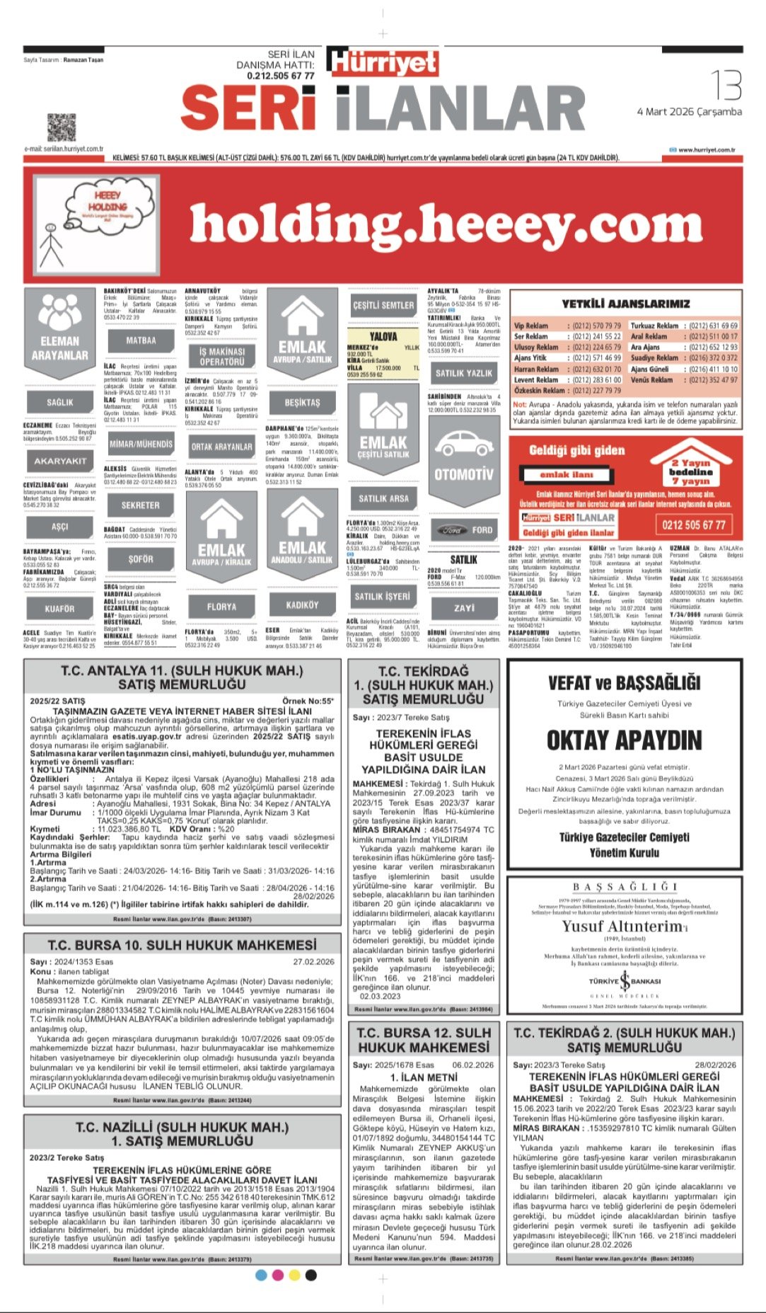 SÖZCÜ BUGÜNKÜ ÖLÜM İLANLARI;HALDUN DORMEN - VEFAT İLANI, SABRİ TURAN KIVANÇ - VEFAT İLANI, ATEŞ H. İRENGÜN - VEFAT İLANI,Sözcü …