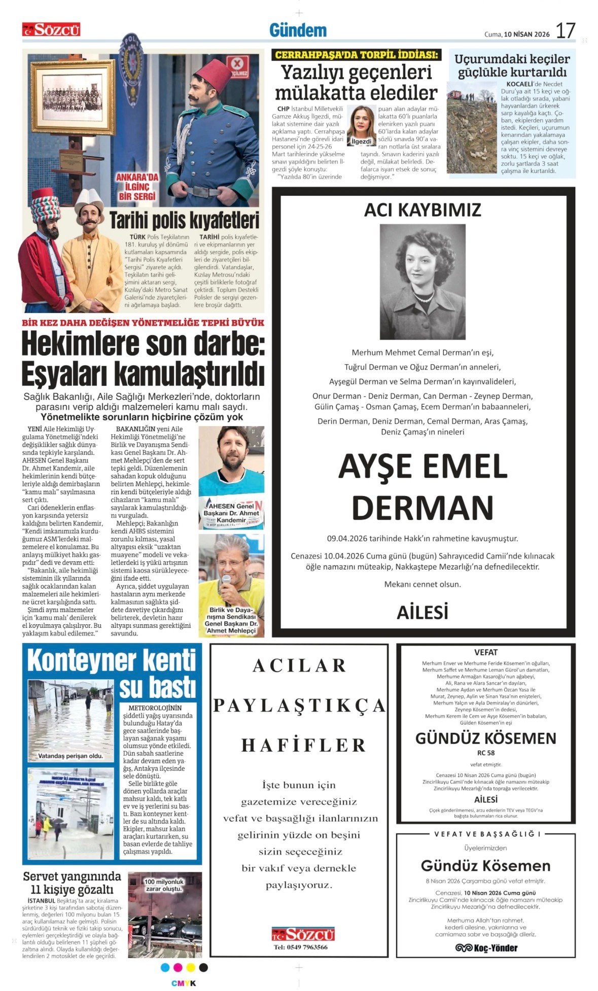 Bugünkü vefat ilanları, Sözcü vefat, Sözcü GazetesiAYŞE EMEL DERMAN, GÜNDÜZ KÖSEMEN,10 Nisan 2026 Sözcü Gazetesi vefat, başsağlığı ve…