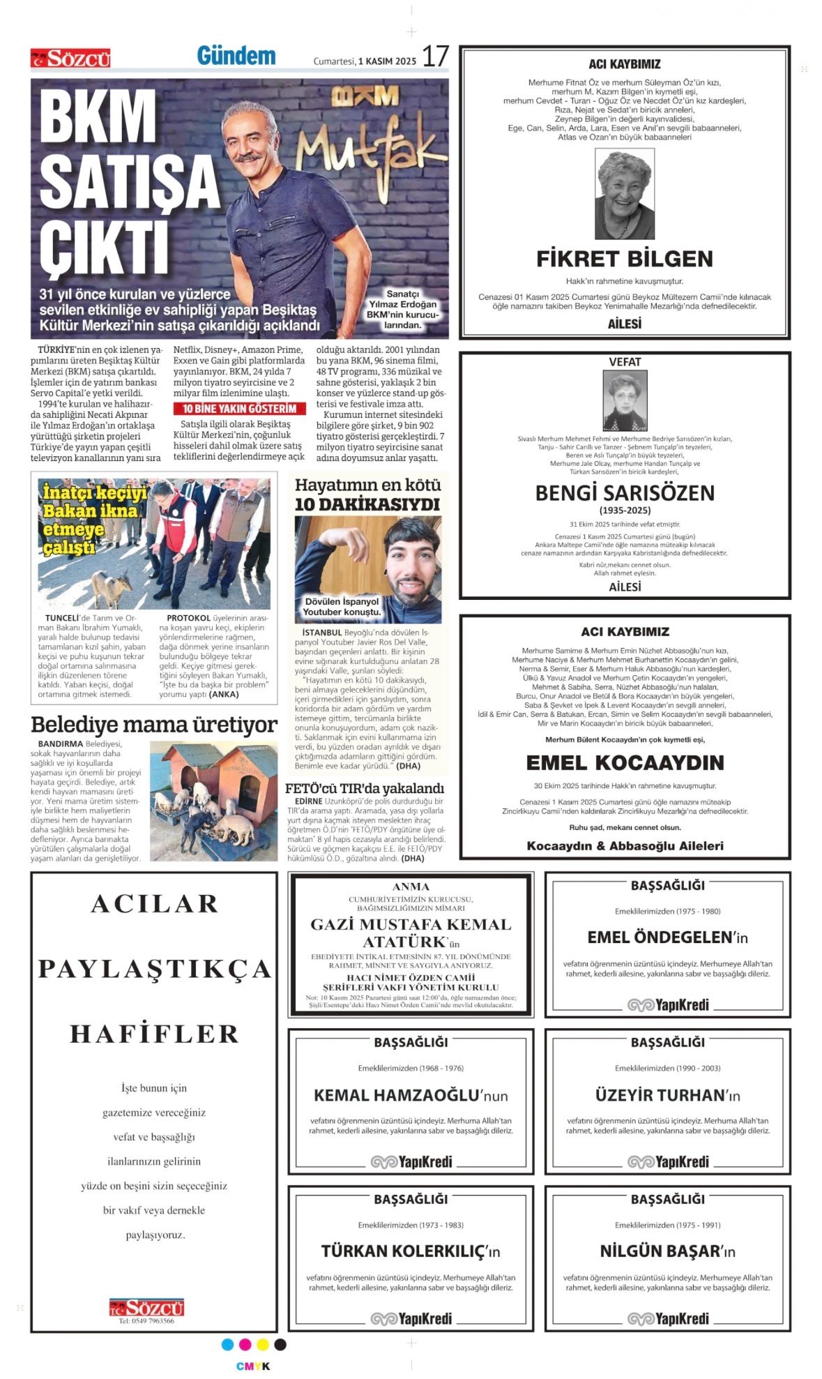 Sözcü Bugünkü Vefat İlan- Başsağlığı İlanı- Anma İlanları ve Arşiv Sayfalar. 31.10.2025