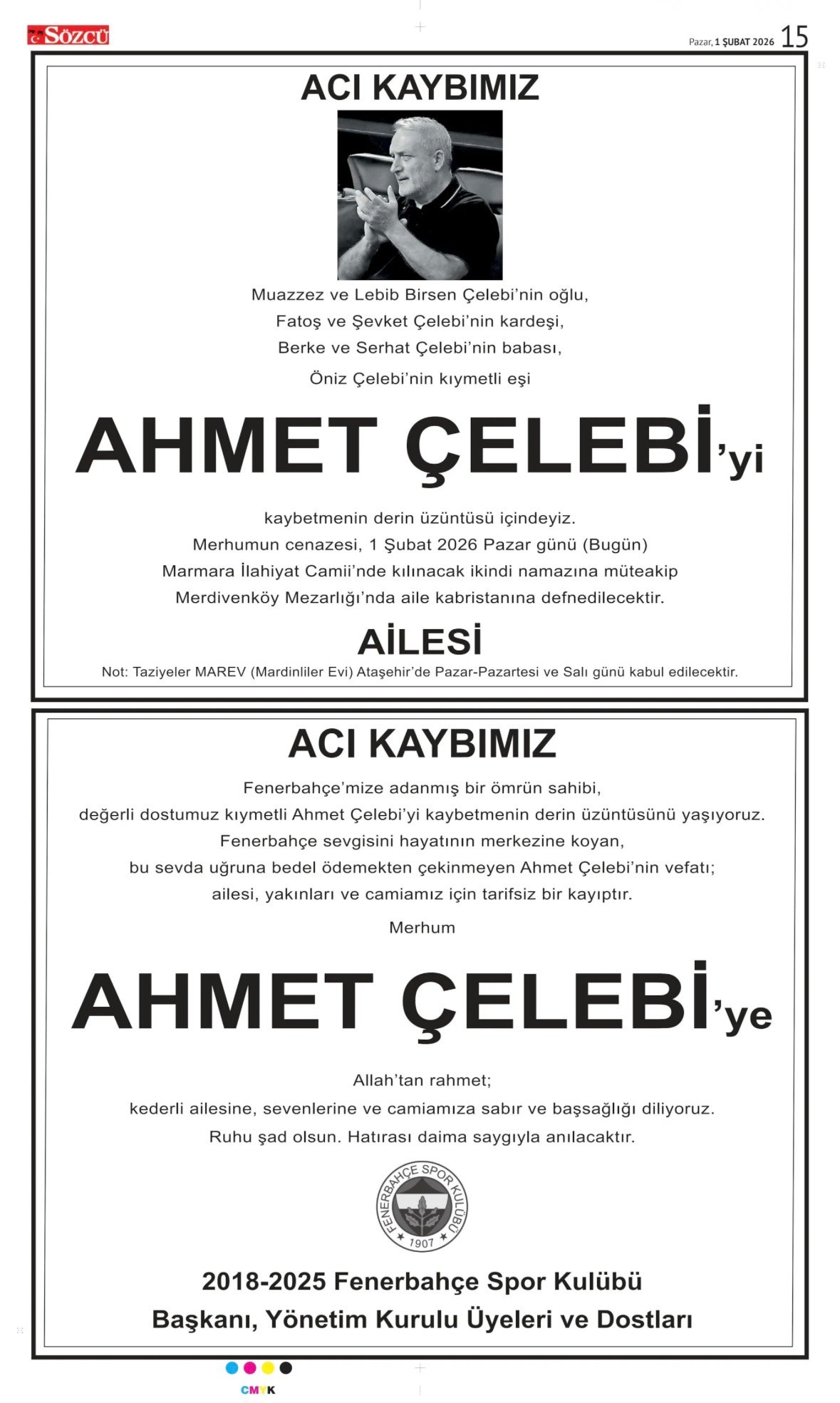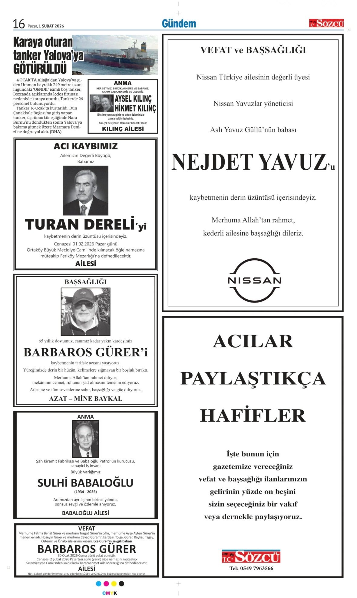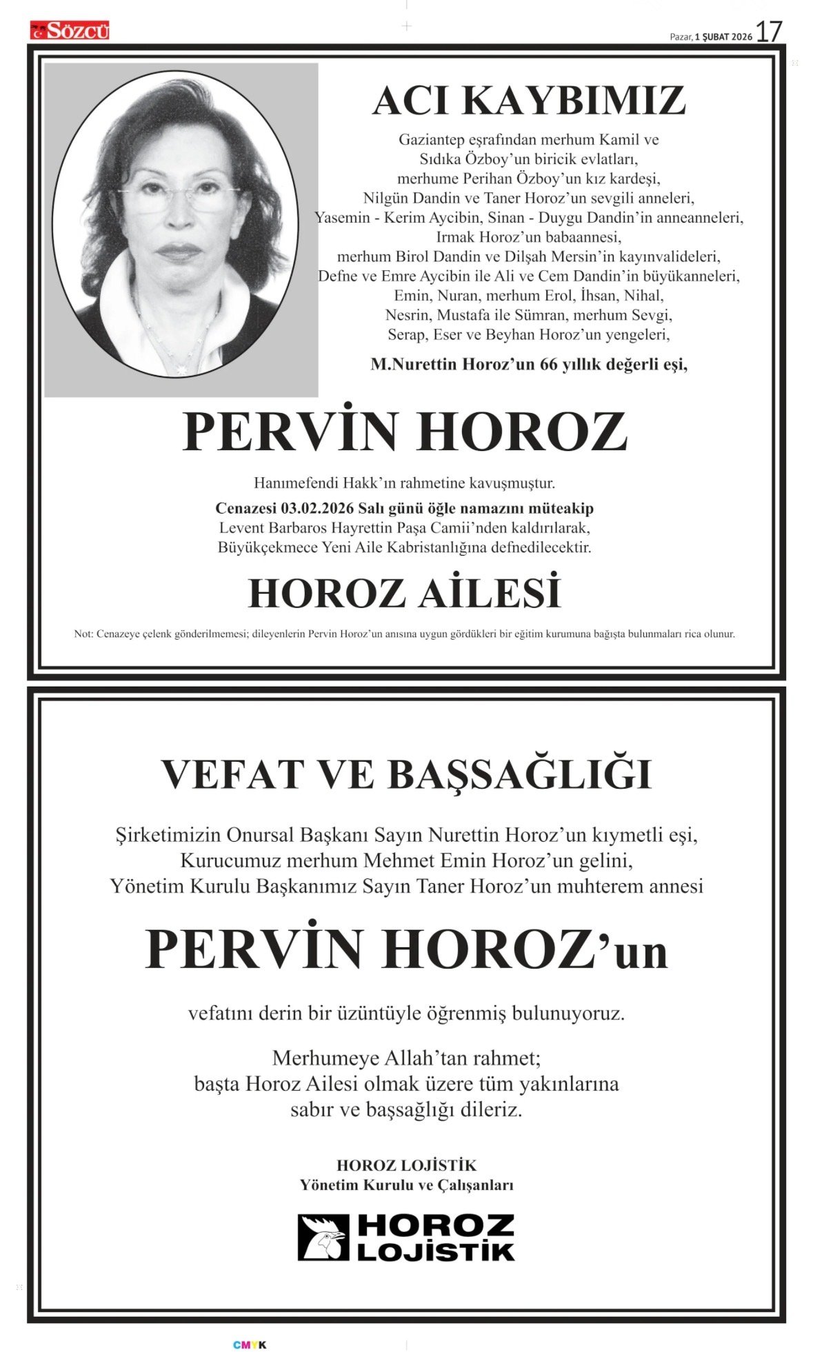 Sözcü Bugünkü Vefat İlan- Başsağlığı İlanı- Anma İlanları ve Arşiv Sayfalar. 1.2.2026
