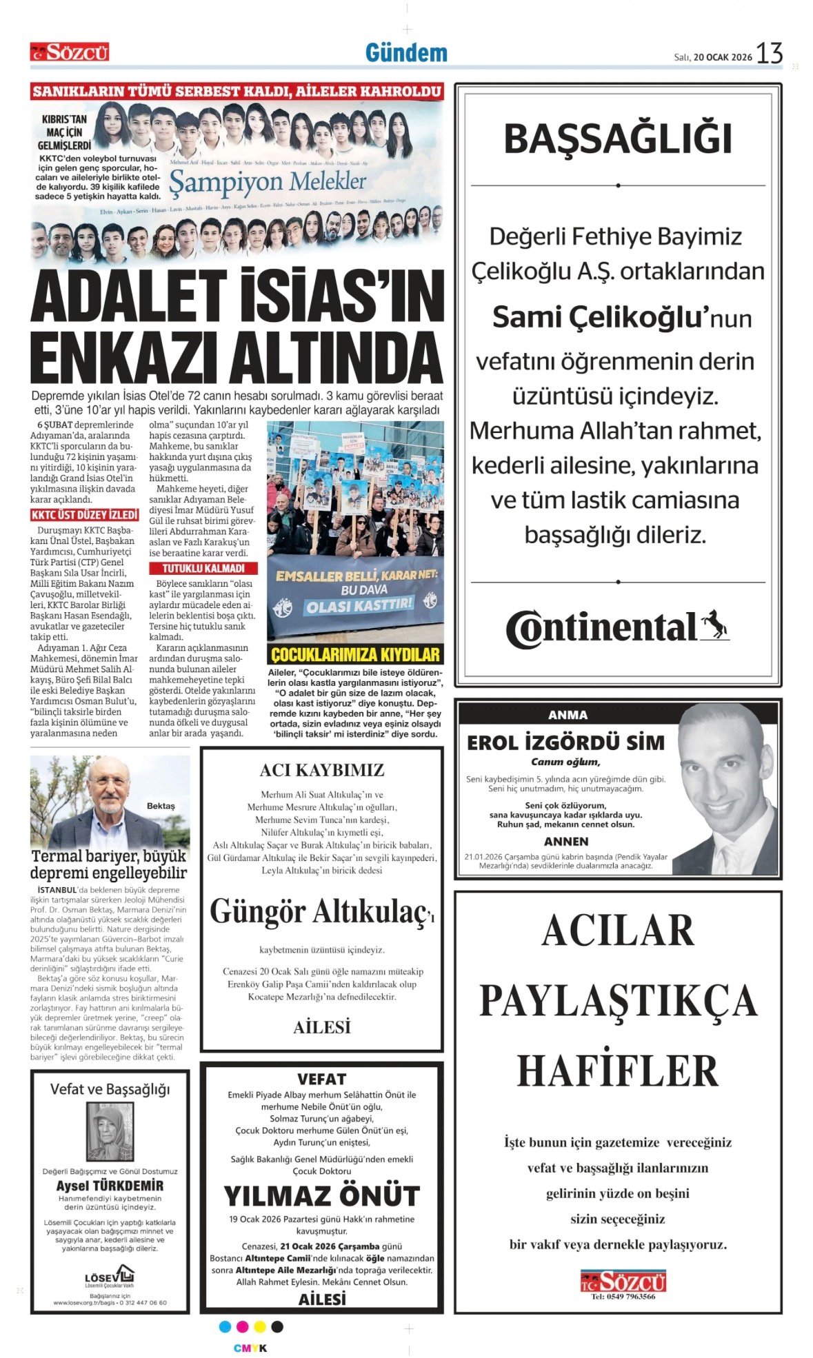 Sözcü Bugünkü Vefat İlan- Başsağlığı İlanı- Anma İlanları ve Arşiv Sayfalar. 20.1.2026