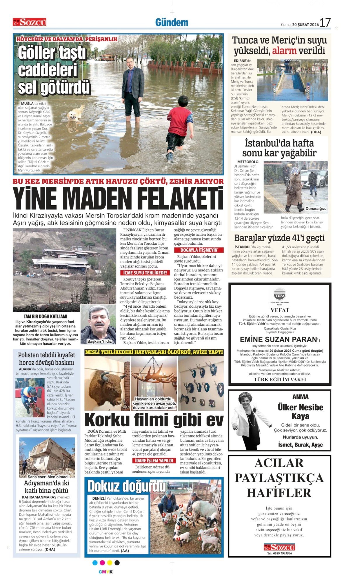 Sözcü Bugünkü Vefat İlan- Başsağlığı İlanı- Anma İlanları ve Arşiv Sayfalar. 20.2.2026