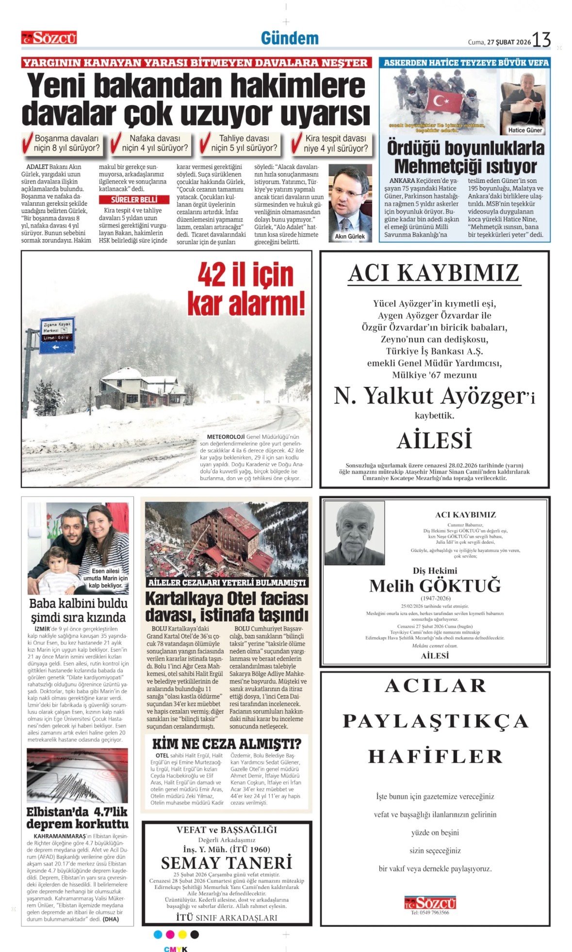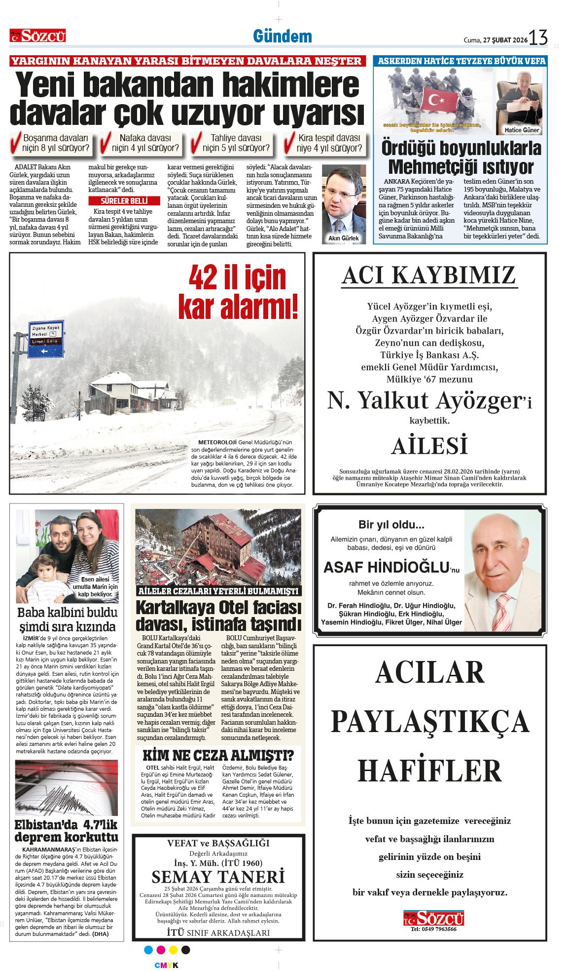 Sözcü Bugünkü Vefat İlan- Başsağlığı İlanı- Anma İlanları ve Arşiv Sayfalar. 27.2.2026
