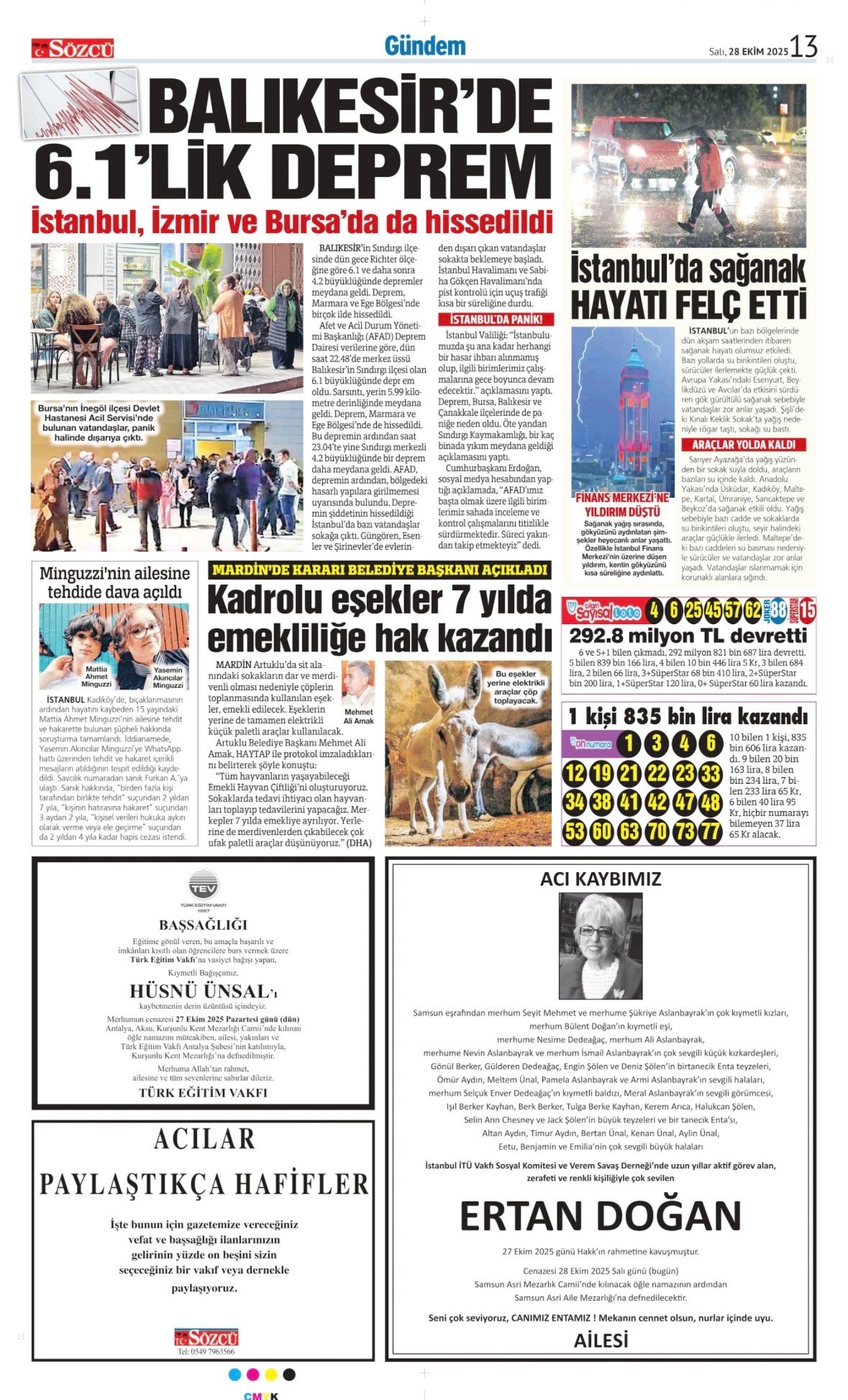 Sözcü Bugünkü Vefat İlan- Başsağlığı İlanı- Anma İlanları ve Arşiv Sayfalar. 27.10.2025