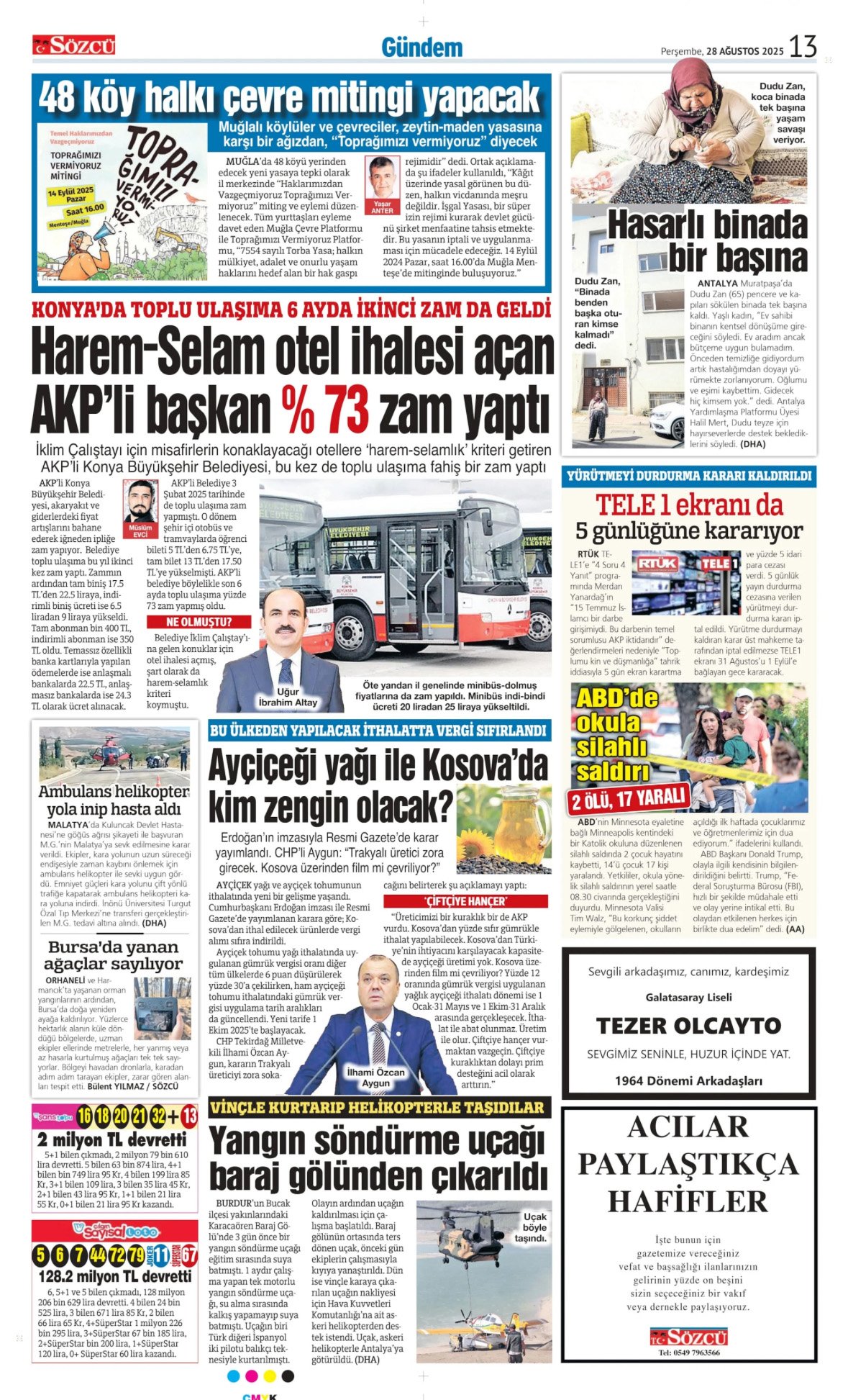 Sözcü Bugünkü Vefat İlanlar 28.8.2025;