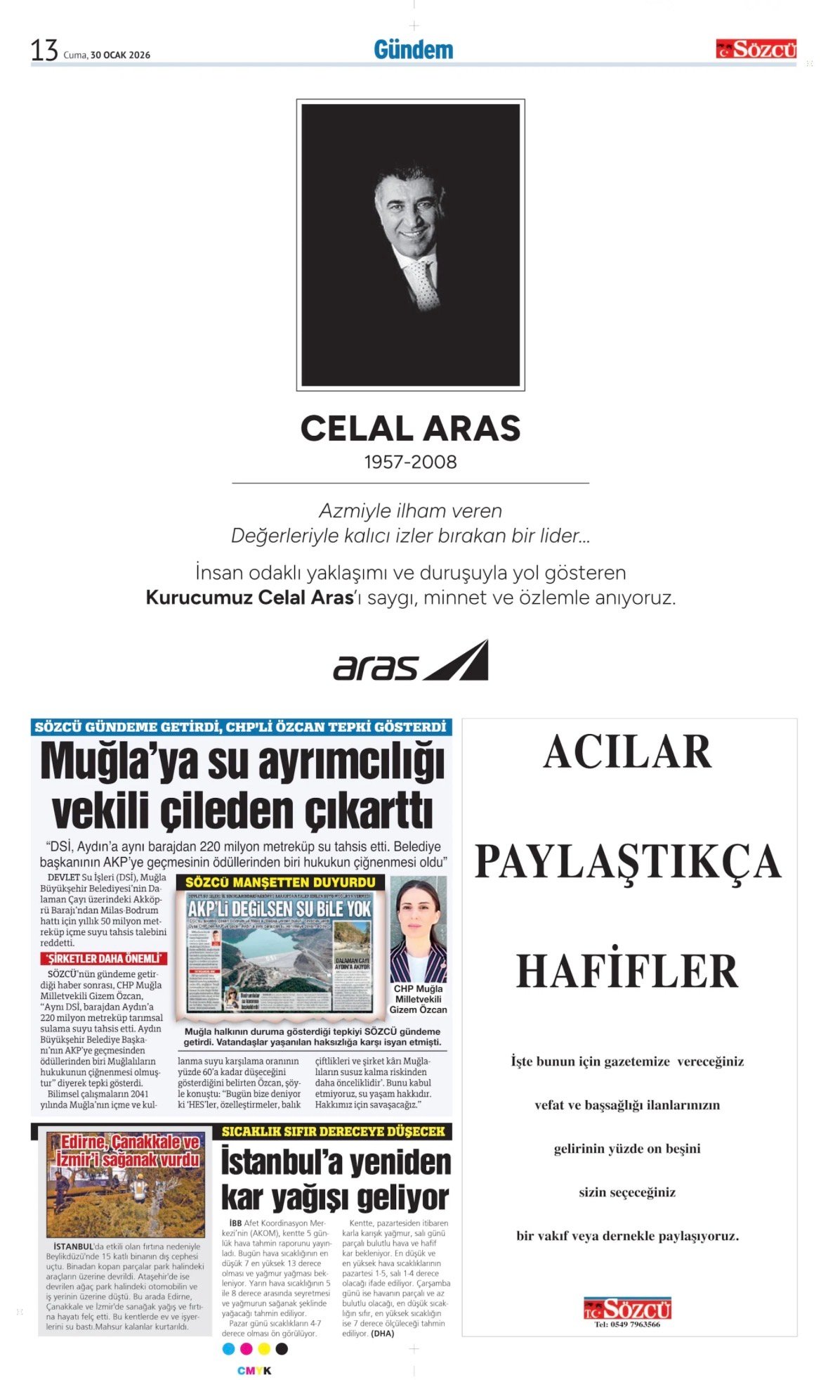 Sözcü Bugünkü Vefat İlan- Başsağlığı İlanı- Anma İlanları ve Arşiv Sayfalar. 30.1.2026