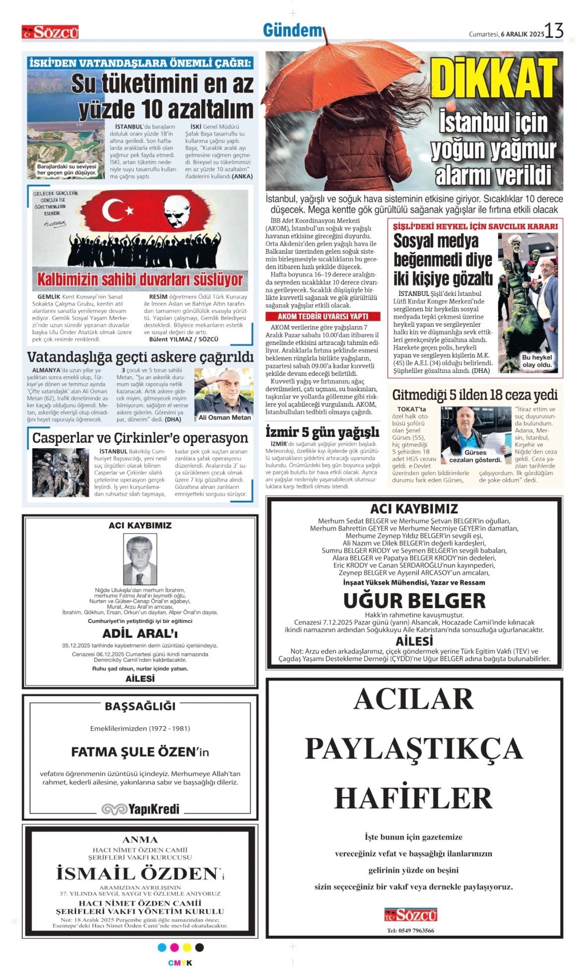 Sözcü Bugünkü Vefat İlan- Başsağlığı İlanı- Anma İlanları ve Arşiv Sayfalar. 6.12.2025